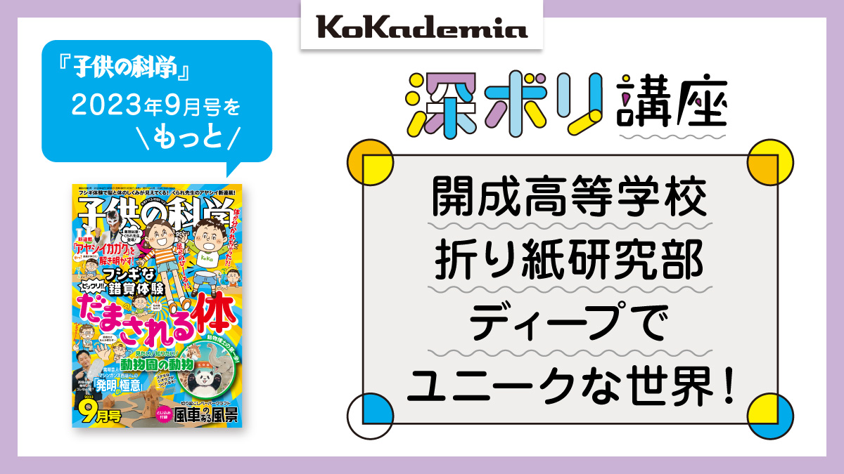 「子供の科学」2023年9月号の「教えてセンパイ!」で取材したのは、開成高等学校 折り紙研究部。折り紙といえば、日本人なら必ず通るメジャーな遊びのひとつですよね。ただ、開成高校の折り紙研究部の部員が折るのは、私たちが幼少時代に折っていたものとは少し異 […]