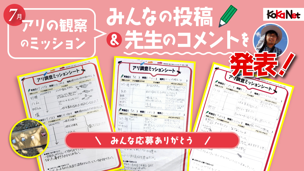 ●みんなの投稿&先生のコメントを見てみよう! ※( )内の学年は応募時のものです。記載がない場合もあります。 ★大久保 光さん(小5) 1回目はたくさん集まったけど、2回目はあまり集まらなかったのでアリを集めるのは大変でした。アリが集まるのは気温や湿 […]