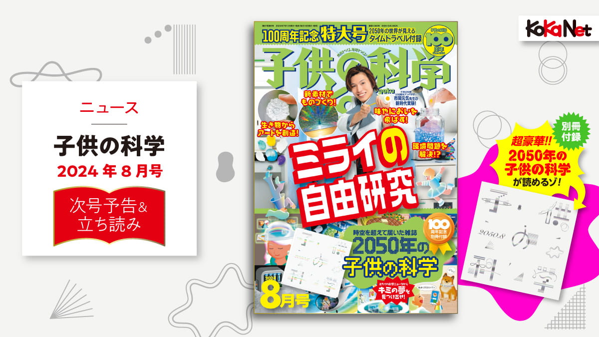 創刊100周年記念特大号! 26年後のミライが見える雑誌『子供の科学』2050年8月号が付録でついてくる! 特集では「ミライの自由研究」をコンセプトに、科学系YouTuber市岡元気先生と現代美術家AKI INOMATA先生が新時代の実験や工作を提案 […]