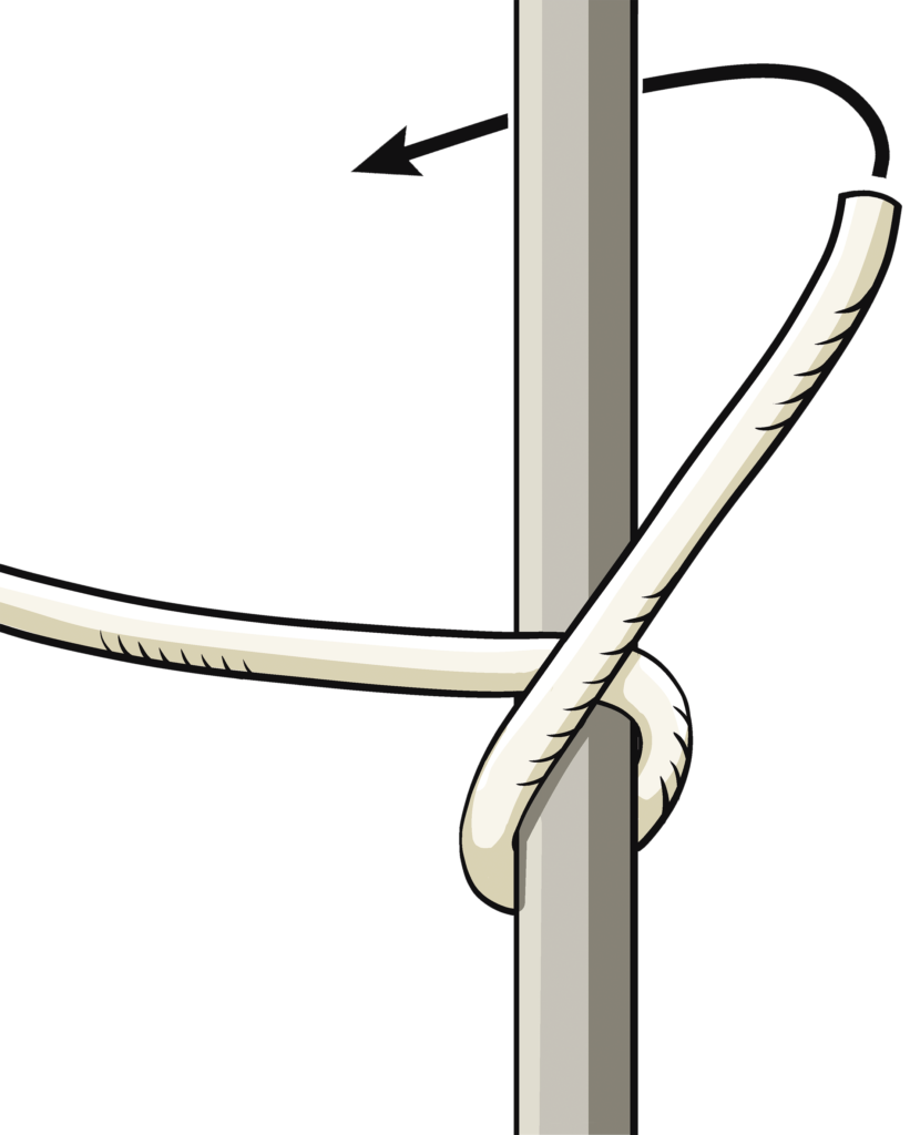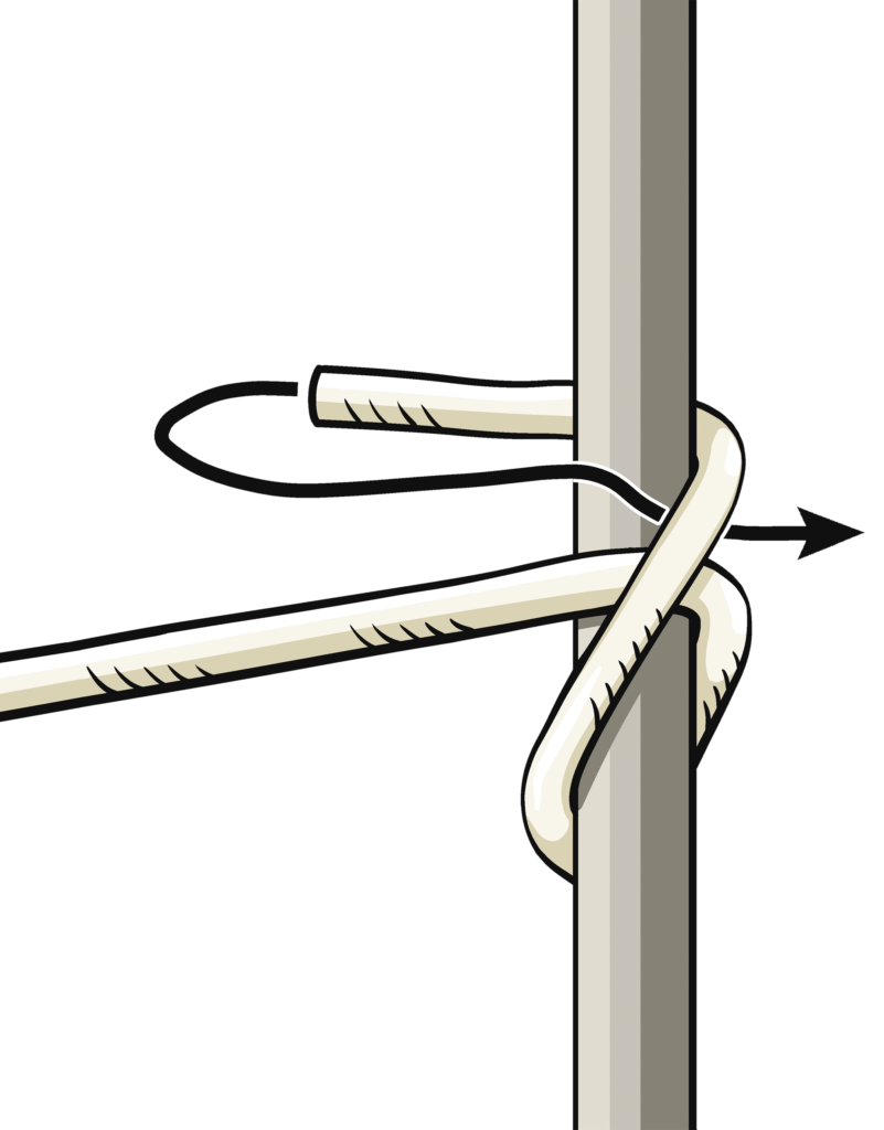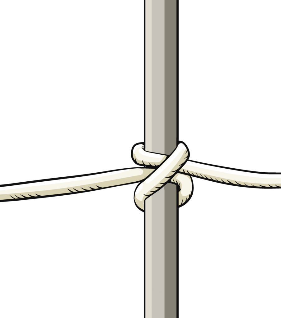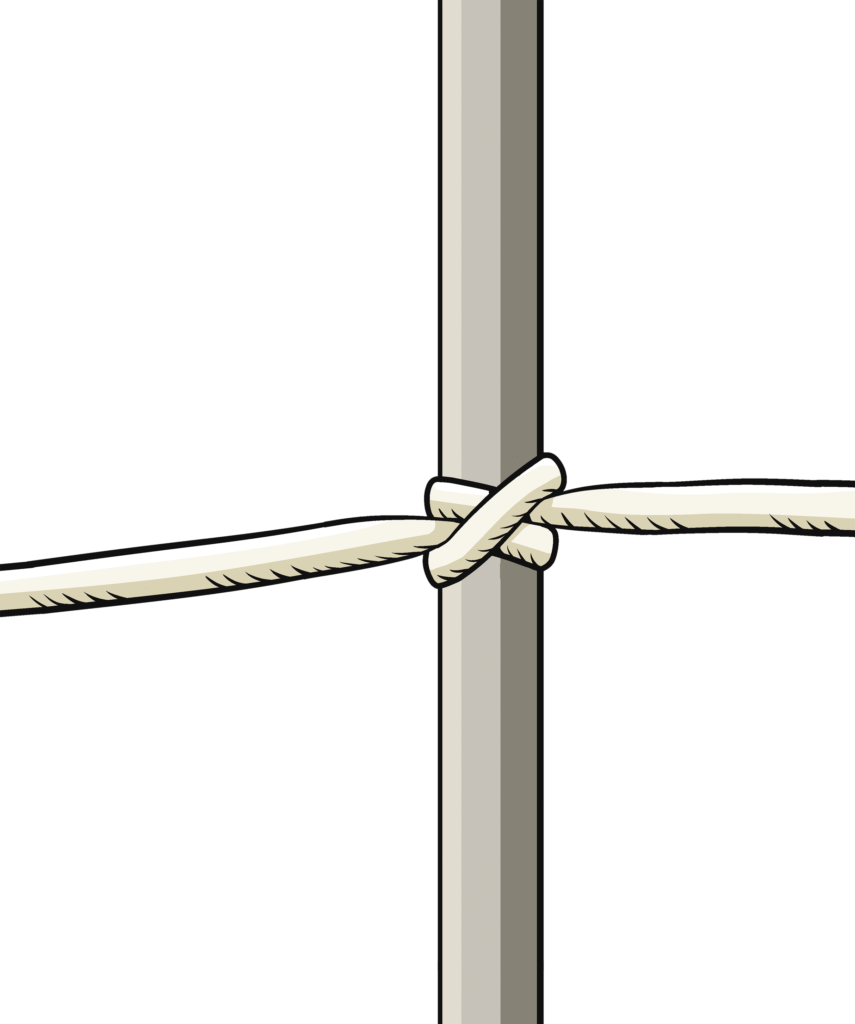 木やものに、ロープを簡単に結びつけられるロープワークだ。道具やものをつくるとき、ロープの巻き始めと巻き終わりを固定するときにも使うぞ。