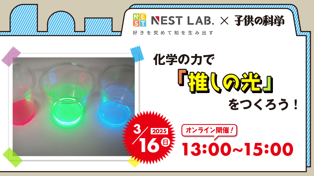 ●当日は『子供の科学』のスタッフがワークショップの模様を記録する場合がございます。当日の様子の画面および録画した動画は、『子供の科学』や「NEST LAB.」の関連サイトに掲載されるほか、『子供の科学』や「NEST LAB.」の宣伝等に使用される場合がありますのであらかじめご承知おきください。