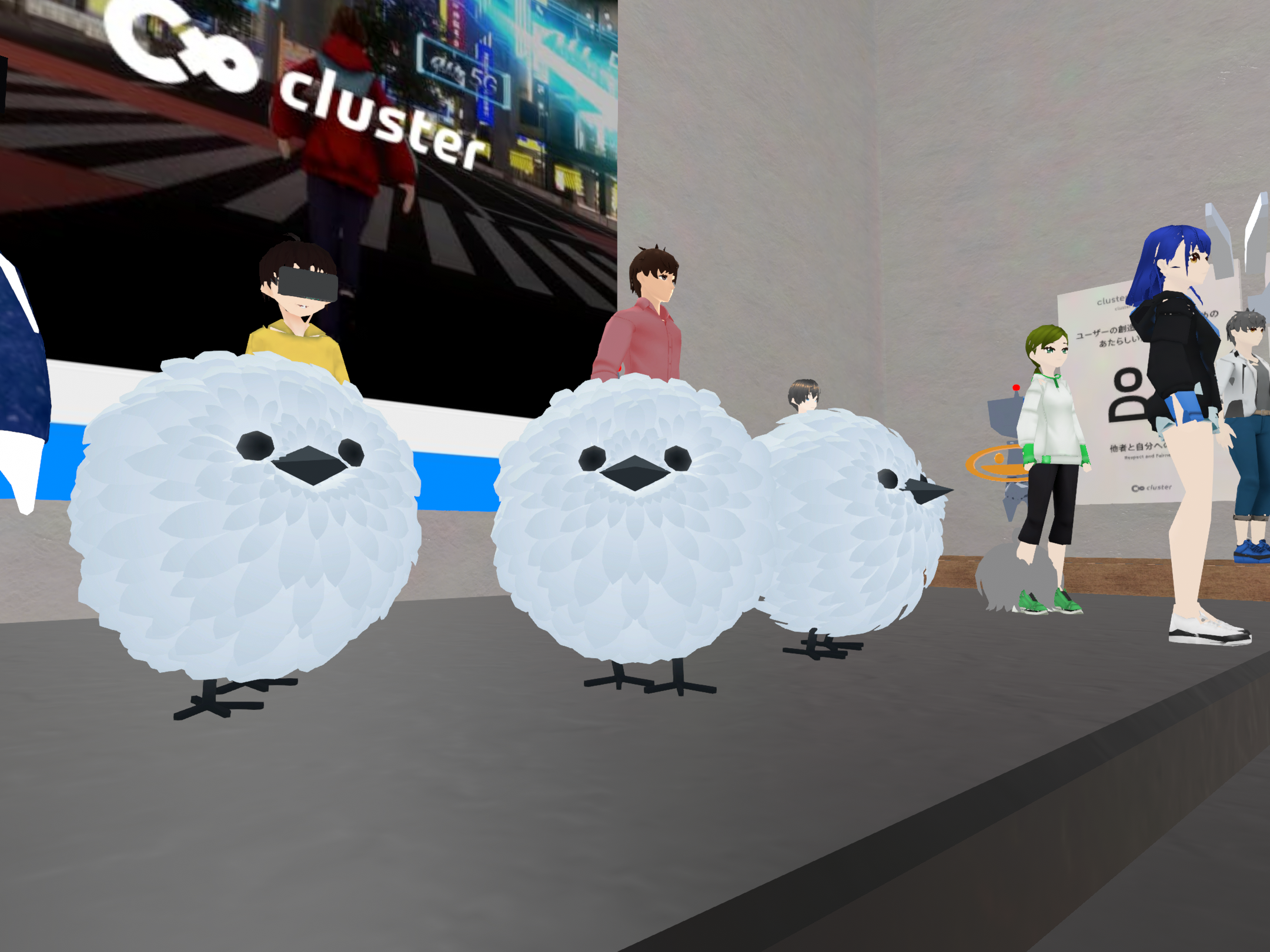 「アバター」はなにも人型だけではなく、下の写真のように“鳥”や“本”の「アバター」もいます。このように、clusterでは“人型”以外の「アバター」を使用することも可能になっています。