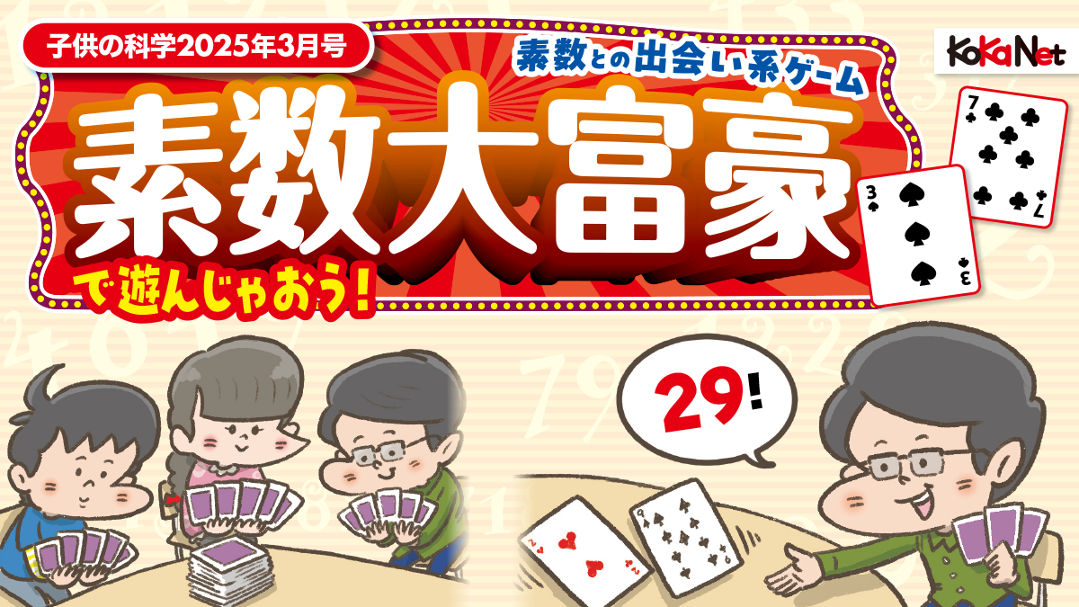 『子供の科学』2025年3月号の「素数大富豪で遊んじゃおう!」は読んでくれたかな? トランプ1組あれば遊ぶことができる楽しいゲームだけど、出した数が「素数」なのかわからないよね。ここでは、素数大富豪の素数判定に役立ったり、遊ぶ時の参考になるアプリやサイトを紹介するよ。
