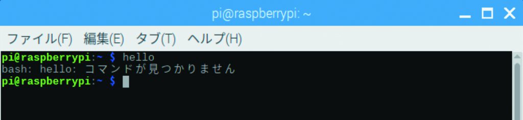 「bash: hello: コマンドが見つかりません」と表示されてしまった。これはそのような命令はないというエラーメッセージだ。