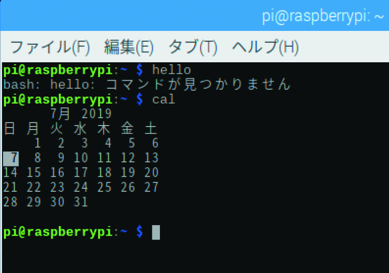 それでは、今度は「cal」と入力して、Enterキーを押そう。画面にカレンダーが表示された。「cal」はカレンダーを表示するコマンドだったんだね。