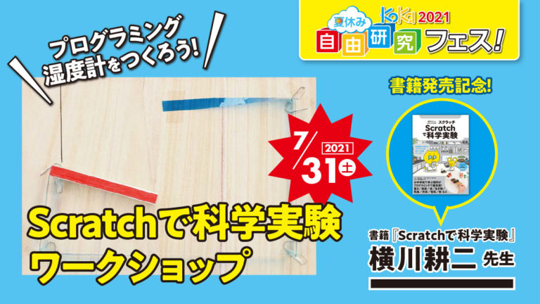 子供の科学★ミライクリエイティブシリーズの最新作となる書籍『理科がもっとおもしろくなる Scratchで科学実験』では、いろいろな科学実験にプログラミングを活用する方法を紹介しています。このワークショップは、本書で紹介している科学実験の中から、身近な材料で湿度計をつくって、プログラミングで観測する方法を一緒にやってみましょう。