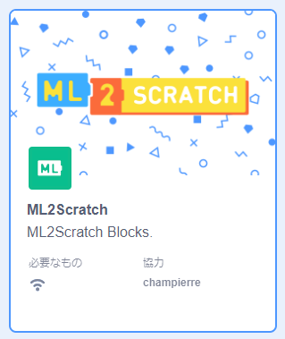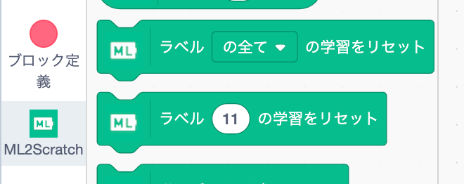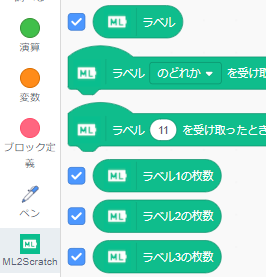 ブロックパレットにML2Scratchのブロックが追加されるよ。