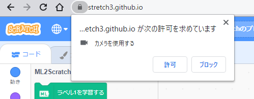 ML2Scratchを追加すると、カメラへのアクセスについての警告