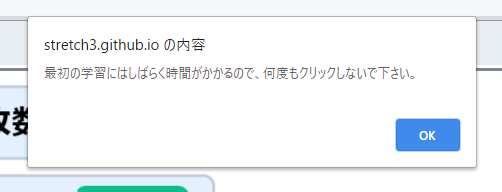 試しに「ラベル1を学習する」ブロックを押して実行してみよう。「最初の学習にはしばらく時間がかかるので、何度もクリックしないでください」という警告が出るので、画面が再び動き出すのをしばらく待とう。