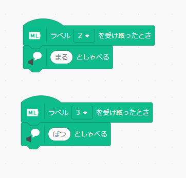 ラベル2の時は「まる」としゃべり、ラベル3のときは「ばつ」としゃべるプログラム