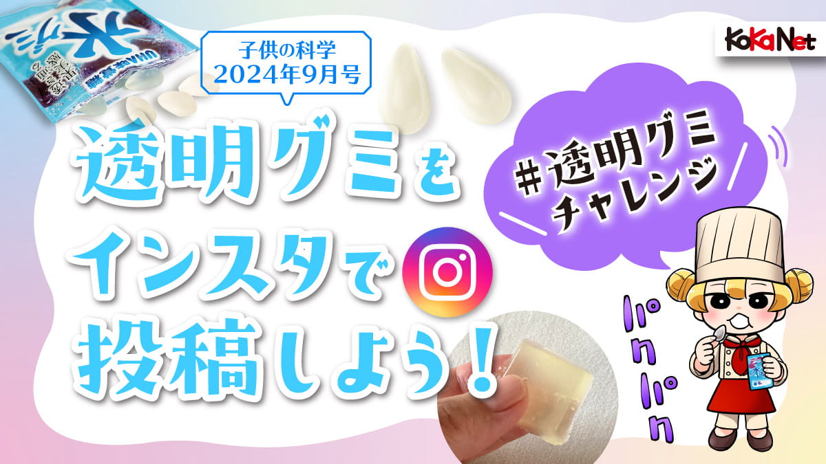 『子供の科学2024年9月号』の「水グミはどうつくられる?」特集は読んでくれたかな? 大人気お菓子の水グミだけど、あの透明感はつくるのがかなり難しいんだ。 本誌ではUHA味覚糖からの挑戦状にこたえるべく、編集部でも透明グミにトライしているよ。しかし水グミにはほど遠い完成度…。ぜひ、みんなにはもっと透明でおいしくて、ぷるぷるしたグミをつくってみてほしい! つくったら写真に撮って、インスタグラムに投稿だ!