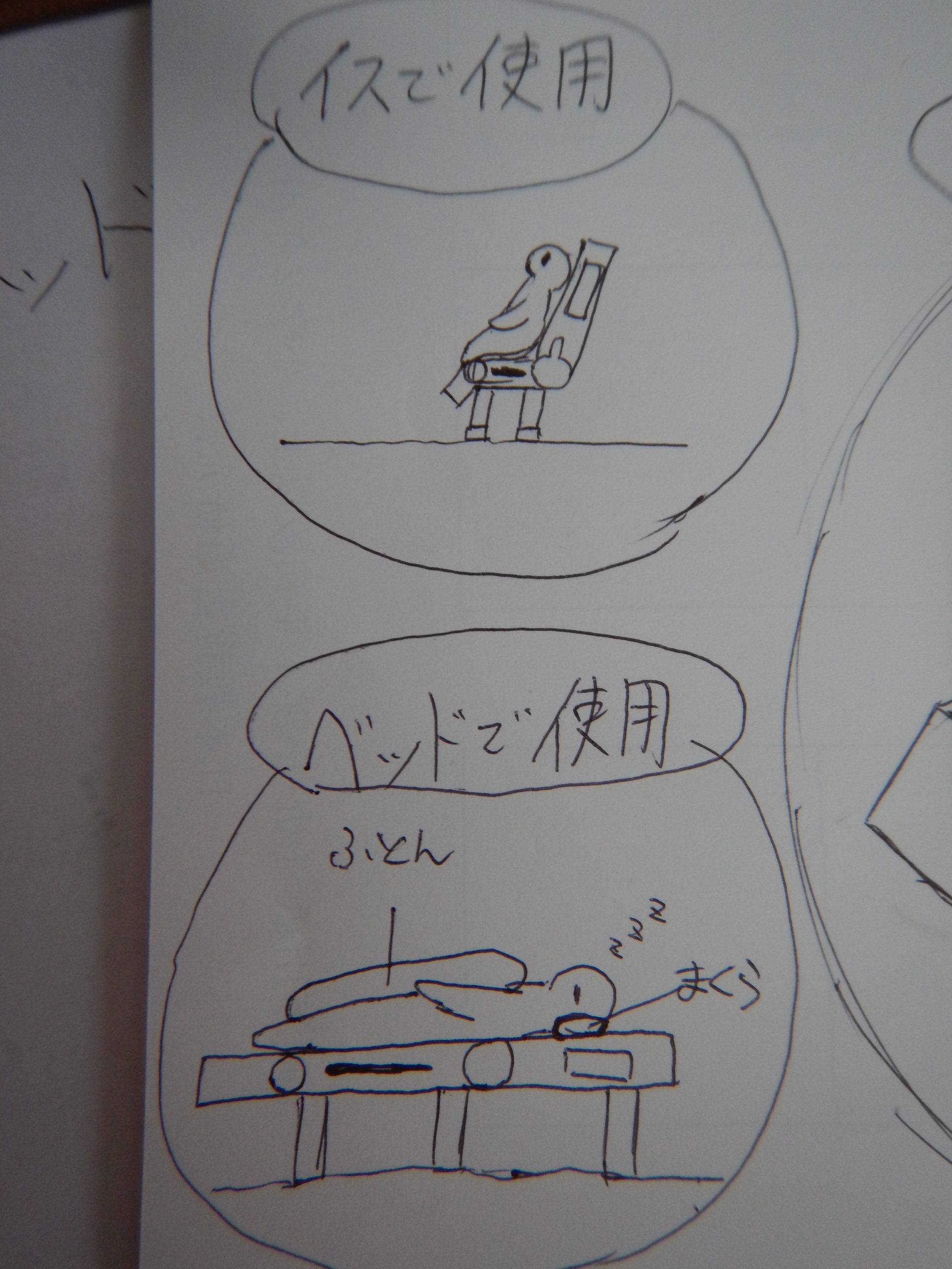 僕がいちばん感動したのは、なんといっても足。Dの足の工夫です。安定して寝るための配慮をきちんとしていて、素晴らしいです。ソファーベッドなどをはじめ、イスとベッドを合わせたものは結構商品化されていますが、この作品は使う人への配慮が全体に行き届いているところが優れていますね。まくらや布団をどうするかなど、なんとも細かい!