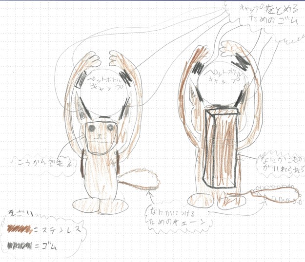 消しゴムをかけたら紙が破れてしまうという問題を解決するための力作です。この問題を解決したいんだ!という強い意志を説明文からも感じますね。日常のイライラとする体験は嫌なものですが、こういうところに発明の種があるんです。目の付けどころはGOODです。