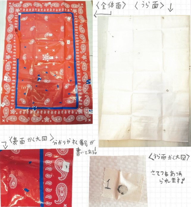 ②コロナ禍で、レジャーシートを使う機会が増えたので、この作品をつくろうと思いました。