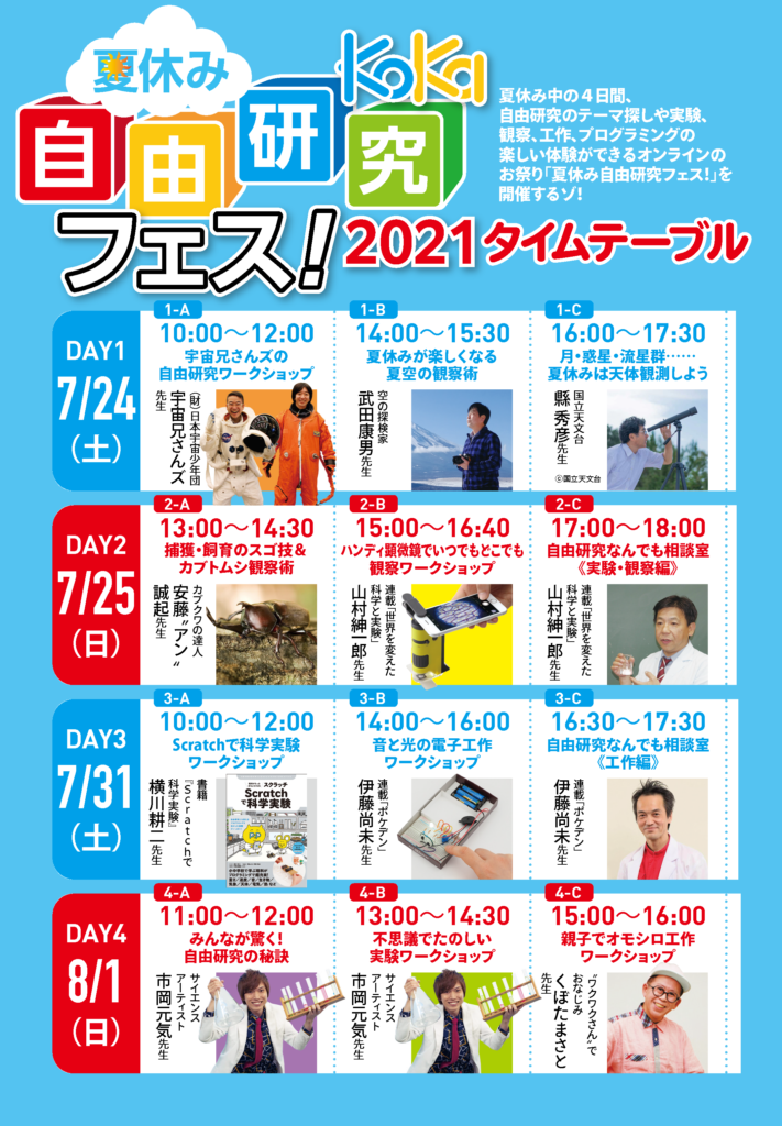 - 3.1 ■7/24(土)10:00-12:00「宇宙飛行士テストに挑戦!宇宙兄さんズの 自由研究ワークショップ」