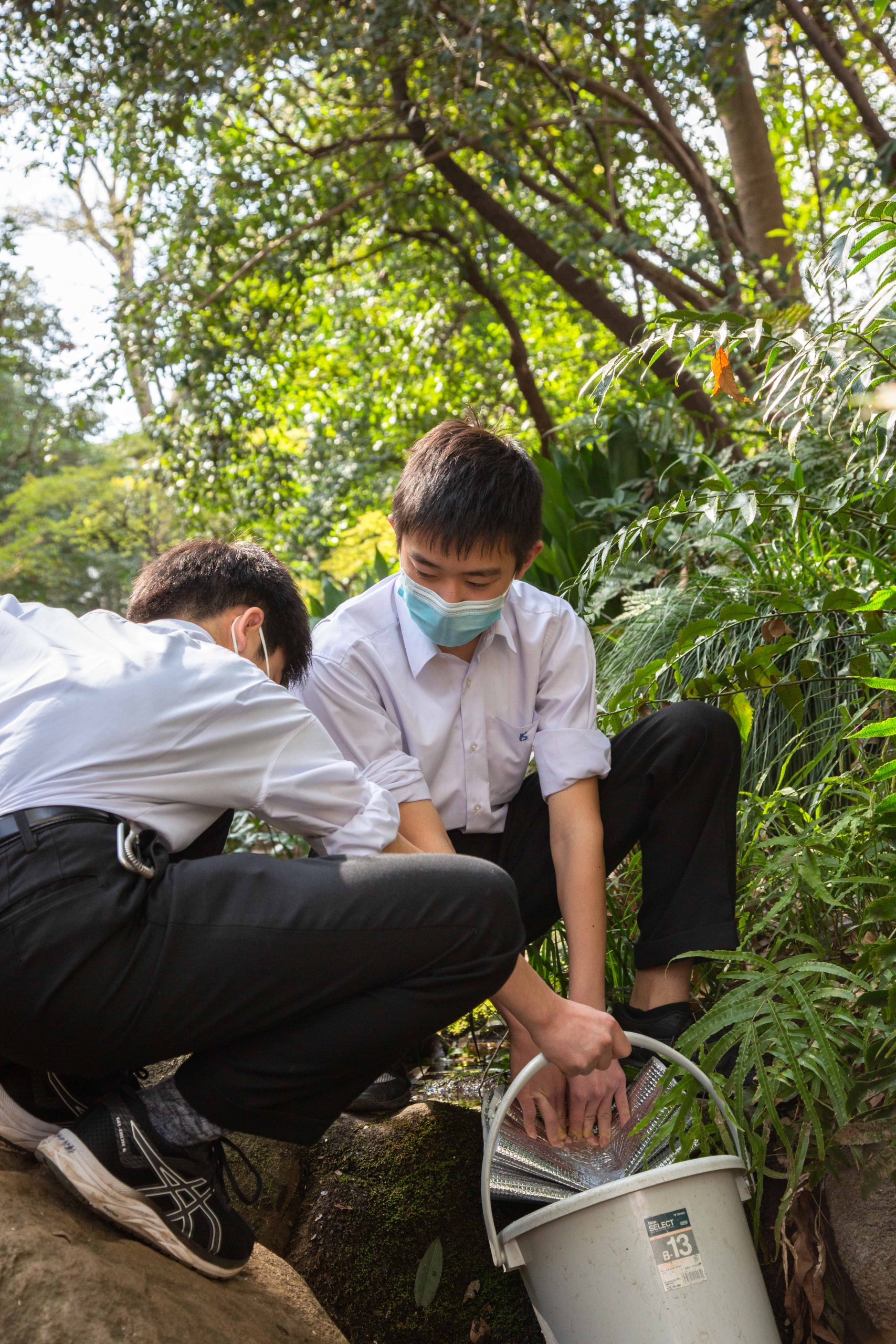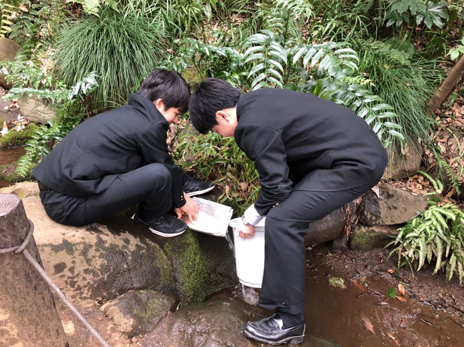 おとめ山公園の湧水調査に注力してきたのは、前部長である高校3年生の青山くん。このおとめ山公園の湧水は、海城高校がある新宿区唯一の湧き水で、東京都の名湧水57にも選ばれている美しいスポットです。データの収集は、歴代の先輩たちから引き継がれ、もう10年以上も継続! いわば部の核となる取り組みで、所属する班にかかわらず、全員が交代で参加しています。