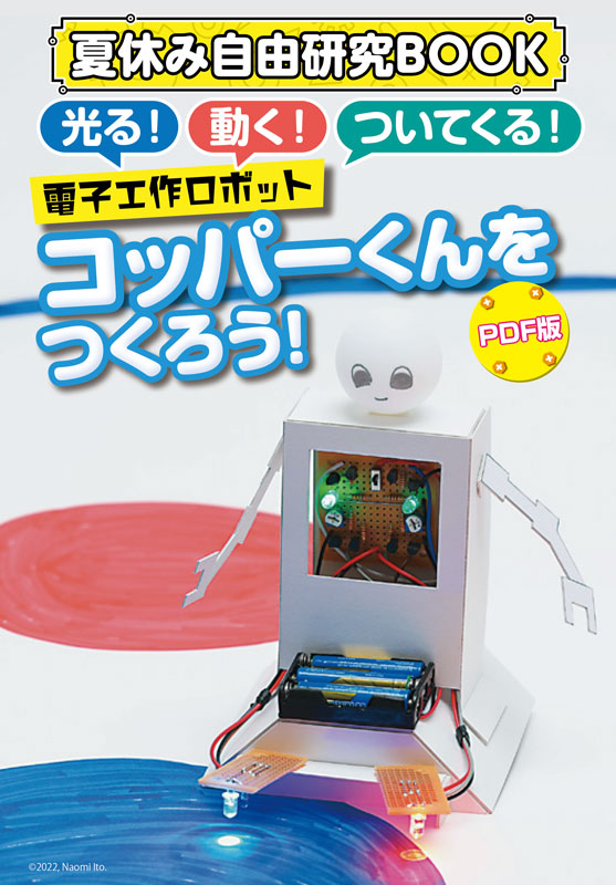 光センサーでラインを読み取り、前進・後退するライントレースロボット「コッパーくん」。『子供の科学』2021年8月号で大好評だったコッパーくんの型紙と、つくり方を紹介した解説書がKoKa Shop!で買えるようになったよ。