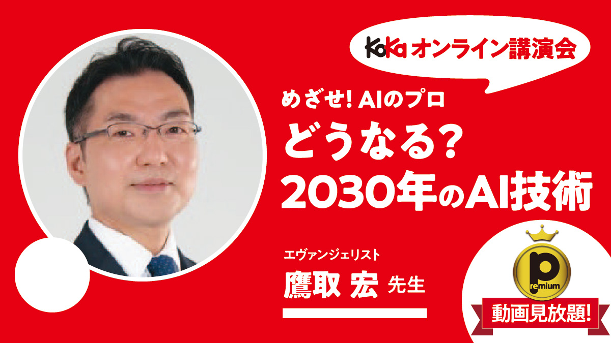 AIの技術はこの先どのように進化し、どんな未来が待っているのか、そして、AIに関わる仕事にはどんなものがあり、鷹取さんがたずさわっている「エヴァンジェリスト」とはどんな職業なのか、など、みなさんが10年、20年先の将来を見通すのに役立つAIのお話をしていただきます。