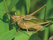 全長約65mm 北海道〜九州に棲息。山地に見られる。木の高いところを好み、「ジーン」と長く連続したとても大きな音で鳴く。
