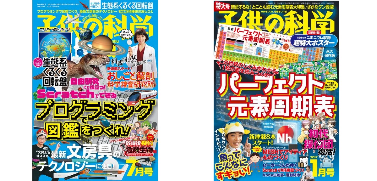 1924(大正13)年創刊、まもなく100周年を迎える老舗科学雑誌です。読者からは、ノーベル賞受賞者を含む多くの研究者や開発者を輩出しています。宇宙、ロボット、生物など各分野の最新情報、工作、実験、プログラミングの体験企画など、子供たちの好奇心に応える内容を毎号お届け。子供たちに“科学の入口”を提供します。