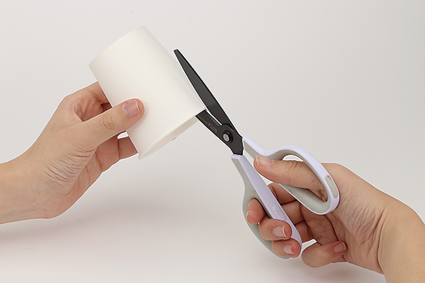 紙コップの飲み口のところから、等間隔で斜めに6回はさみを入れる。