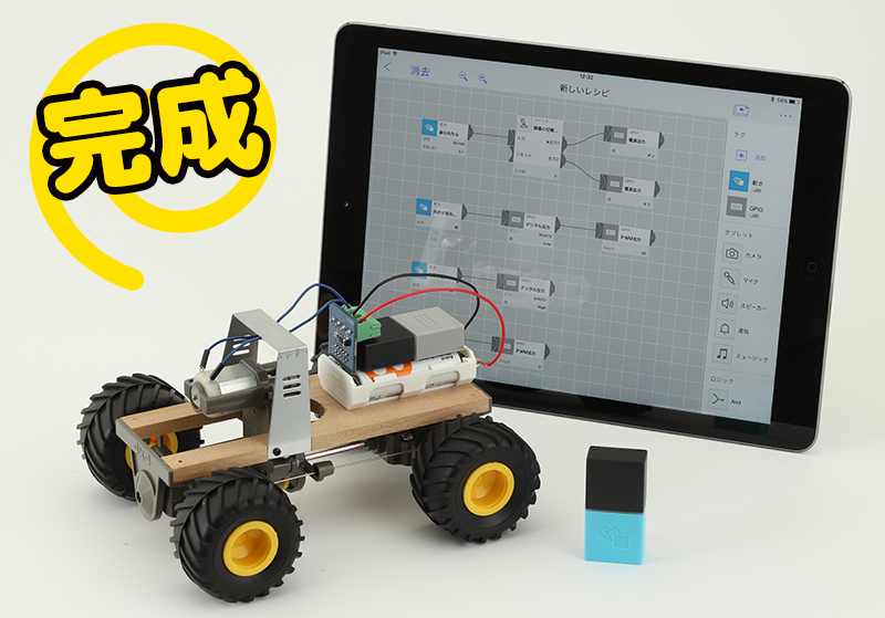 モーターやセンサーをつなぎ、工作の幅を広げてくれるGPIOタグ。今月は、さらに機能を拡張できる拡張ボードを接続してみよう! 使うのは、小型のDCモーターを1つコントロールできるモータドライバだ。MESHを使えば、無線でコントロールできるMESHカーが簡単につくれるゾ!