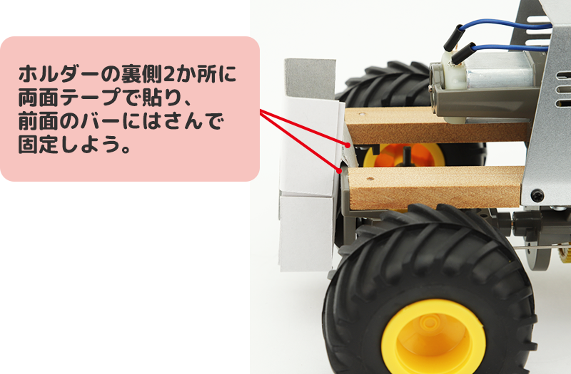 MESHカーの前面にホルダーを引っ掛けるようにして取り付ける。