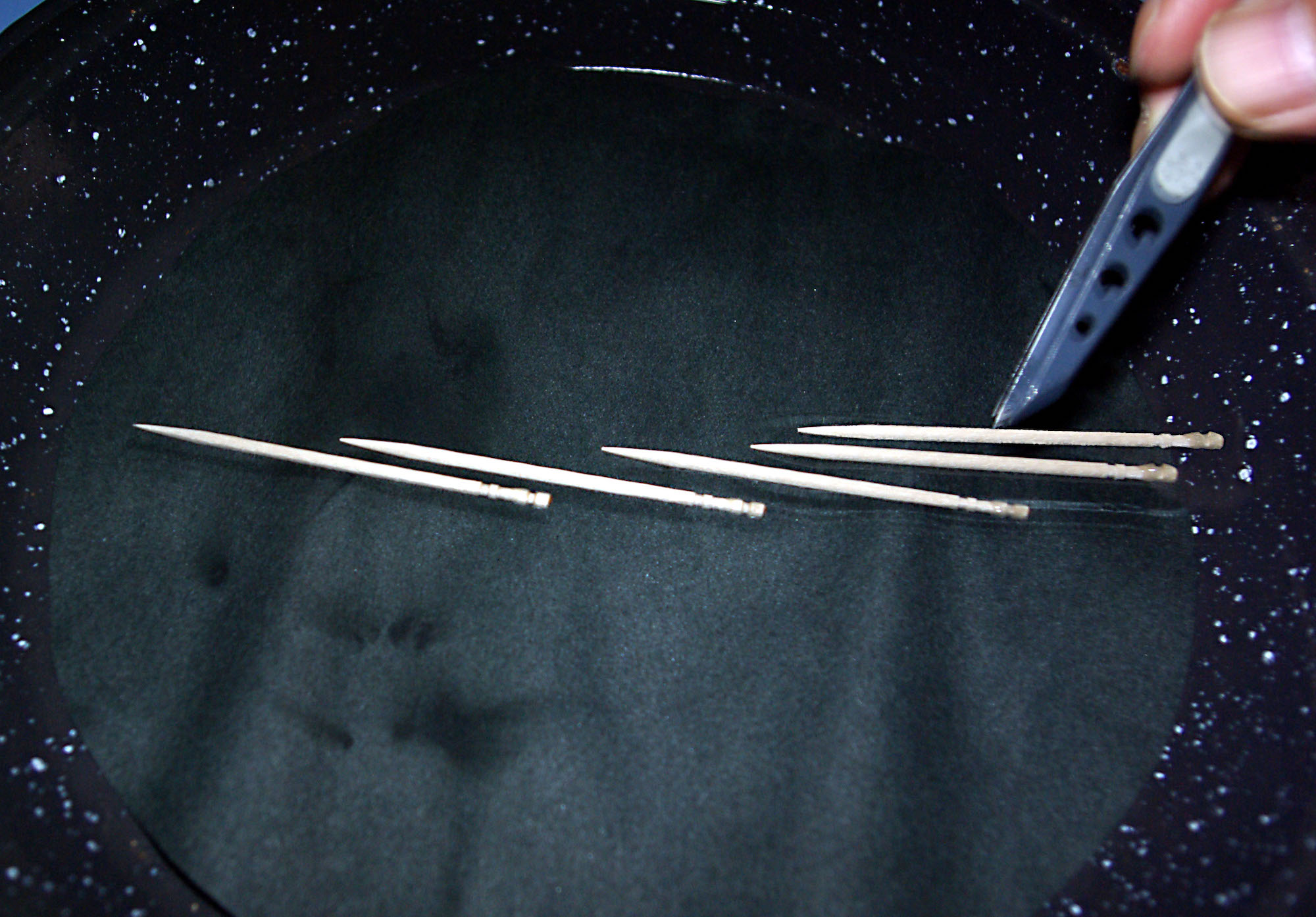 2:竹ぐしの面を水平にして左右を持ち、ロウソクの炎の下の方(ロウソクの芯のすぐ上)に3秒間差し込んで引き出し、焦げぐあいを観察。