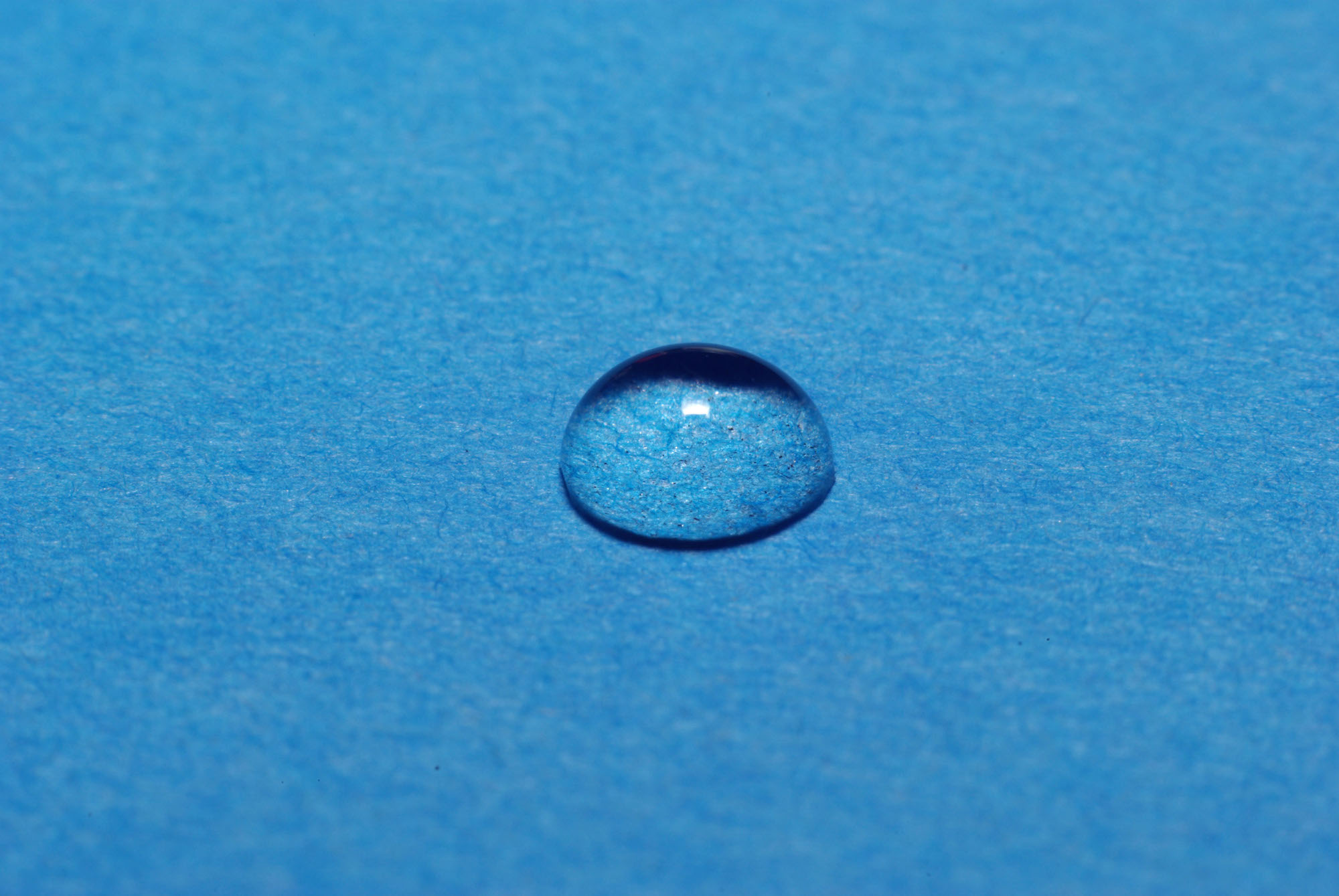 水が十分にあると、できた水玉はまん中がふくらんだ凸レンズの形になる。ルーペでも使われる凸レンズは、光を集めものを大きく見せる。軽くぬぐって水が少なくなると、水玉はまん中がへこんだ凹レンズの形になる。凹レンズは光を広げるので、ものが小さく見える。
