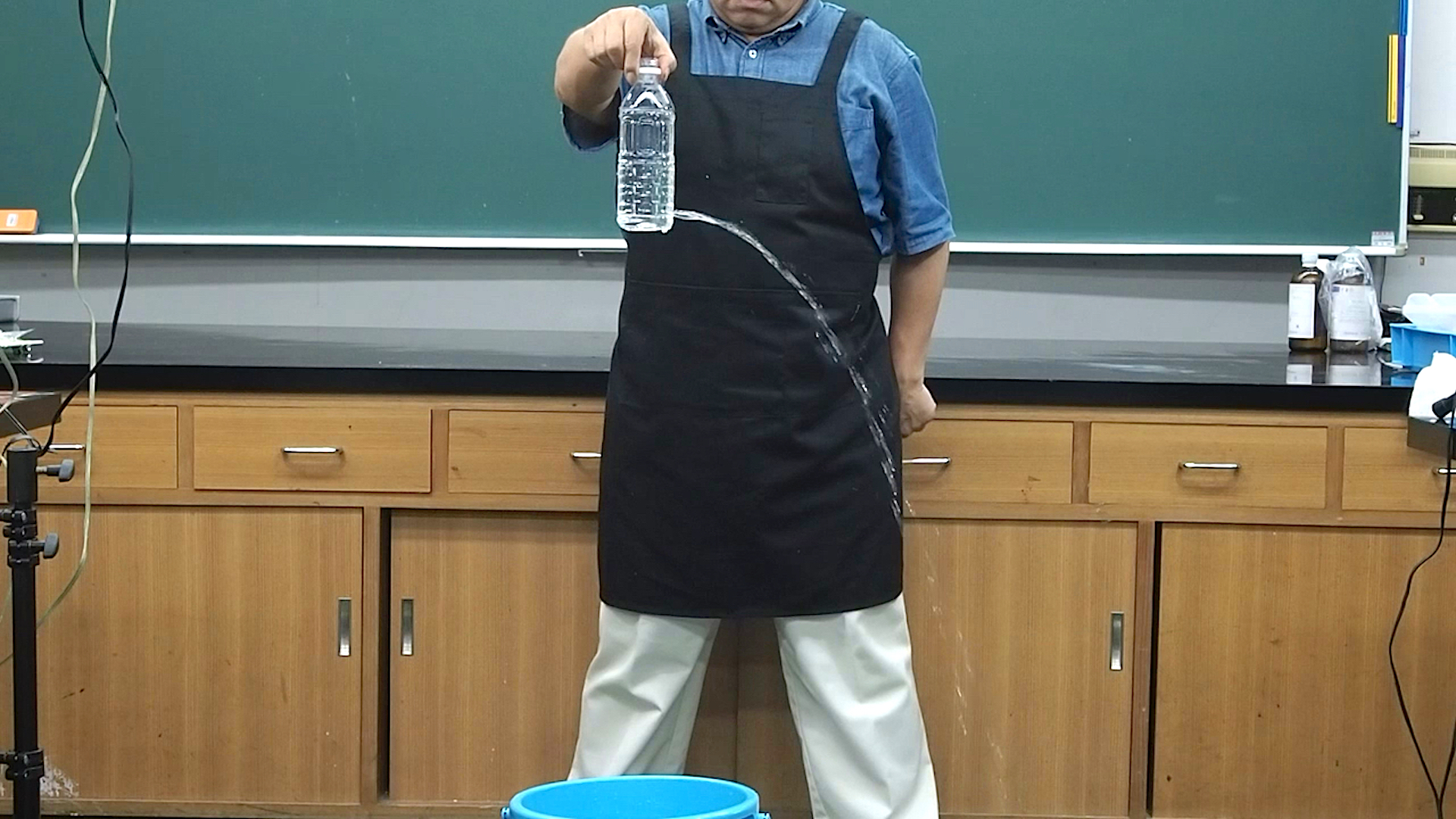 3:そのまま手をはなしてボトルを落とすと、落ちている間は水流がとまる。