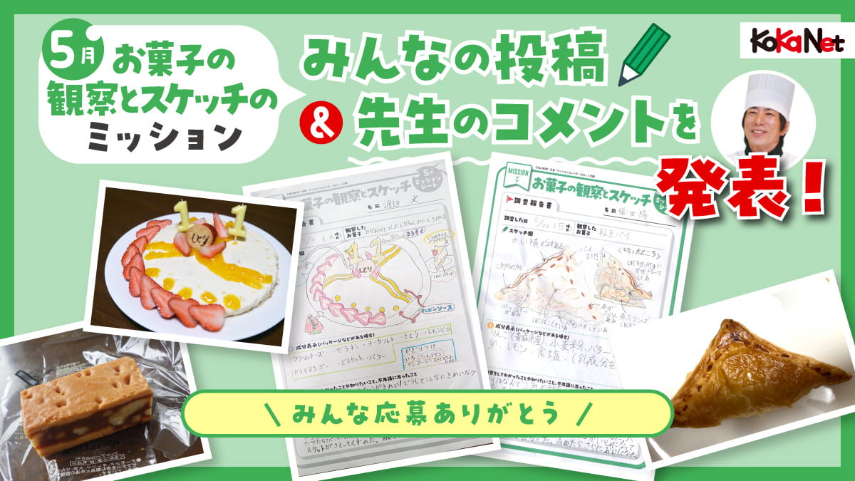 今月もたくさんの投稿をありがとうございます! 松井博司先生が、みんなからの投稿にコメントをしてくれたよ。お菓子づくりのちょっとしたコツも教えてくれているから、ぜひチェックしてみて!