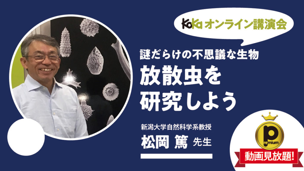 き通ったアメーバ状の体をもつ放散虫ですが、なぜこのような骨格をもっていて、なんでこんな不思議な形をしているのか、謎に満ちた生き物です。また、放散虫を調べていくことが、地球の歴史を解き明かすカギにもなります。オンライン講演会では、さまざまな形の放散虫を見ていきながら、松岡先生の研究室ではどのような研究が行われ、どんな謎を解き明かそうとしているのか。そして、将来生物を研究してみたいと思っているみなさんに向けて、放散虫の研究のおもしろさや、今からやってほしいことなどを教えていただきます。 動画はコチラ