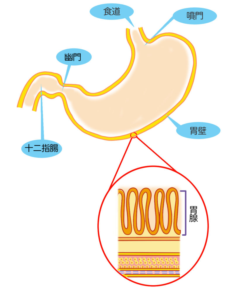 胃の壁(胃壁)の表面から「胃液」という食べ物を分解するための「消化液」が分泌