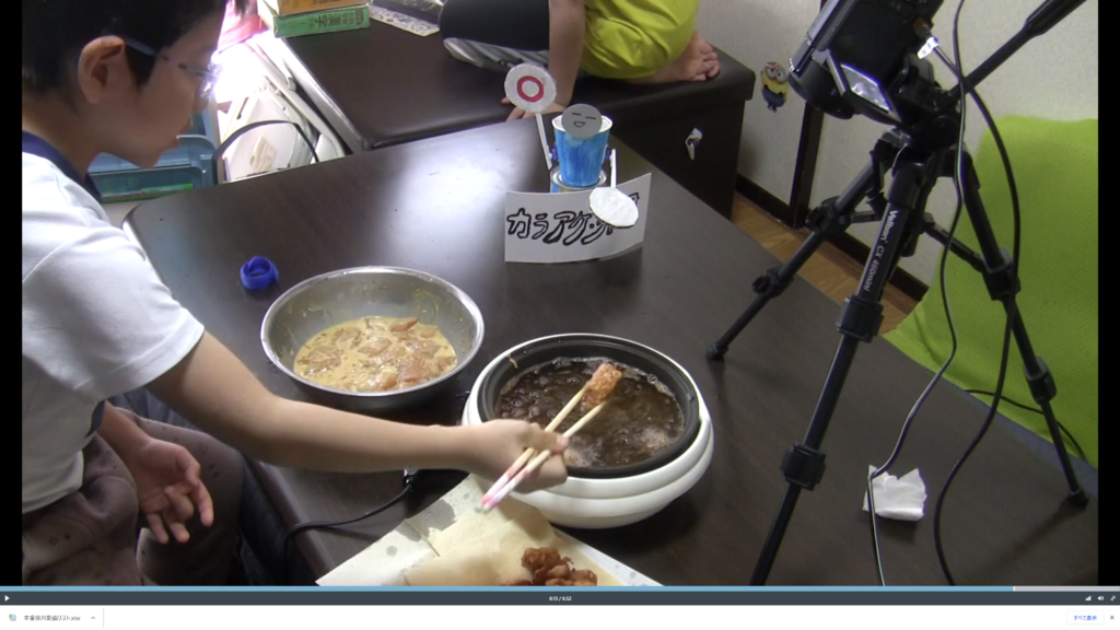 がったら「からあげっとくん」が丸い旗を挙げるよ。これで誰でもおいしくからあげをつくることができる優れもの。