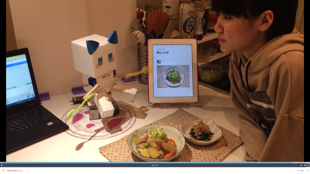 ジャガイモとかお肉などの食材を見せるとそれがなんだか判別して、見せた食材でつくれるレシピを教えてくれるよ。そして、つくっているときにロボットが応援してくれるんだって。料理の役に立つし、楽しくなるね。