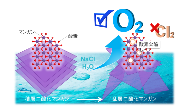 准教授らの研究グループは、新たに触媒の特異な反応選択性を利用することで、塩素を出さずに海水を電気分解する技術を開発しました。