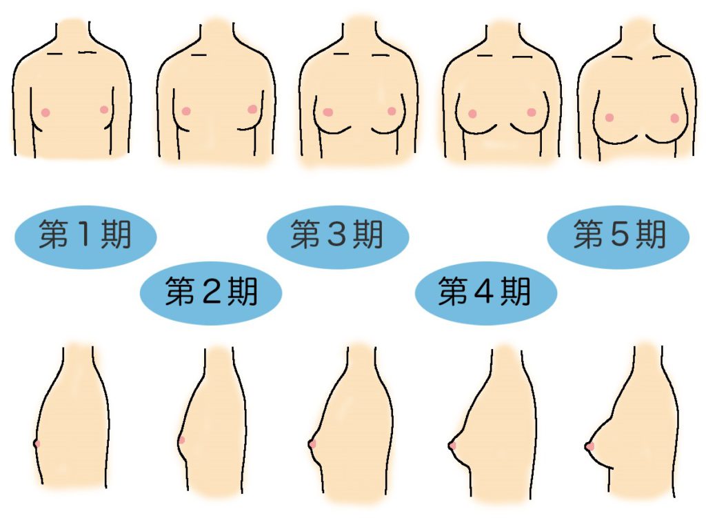第1期:(思春期前)まだ乳房がふくらんでいない状態(乳頭のみ突出)