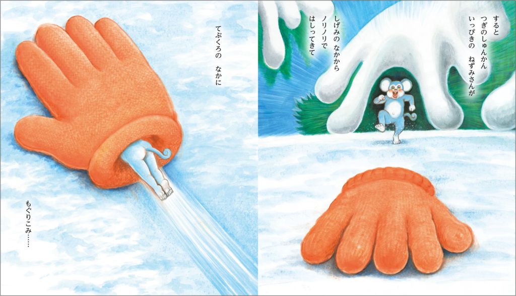 おじいさんが森の中で落とした「てぶくろ」のなかに、動物たちが次々ともぐりこみ……???