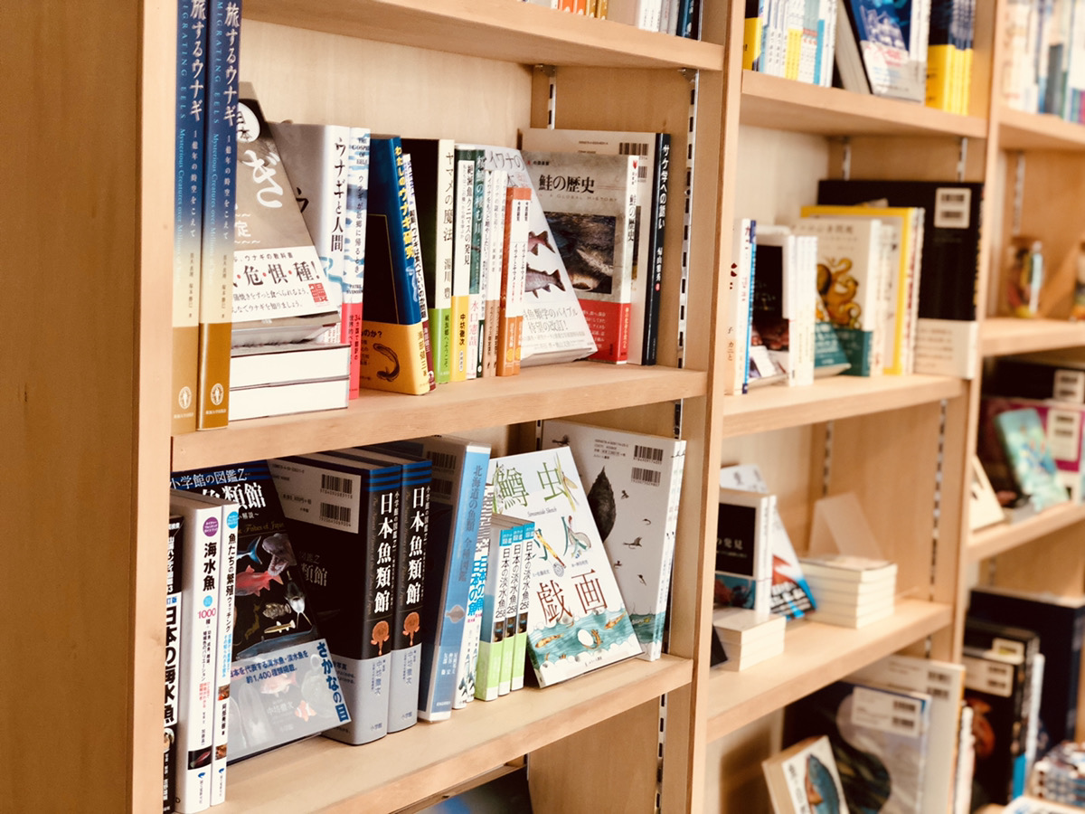 「SAKANA BOOKS」は全国初、魚に関する本に特化した本屋さん。魚をはじめとする水生生物についての本や、かれらを取り巻く環境についての本をメインに扱っている。