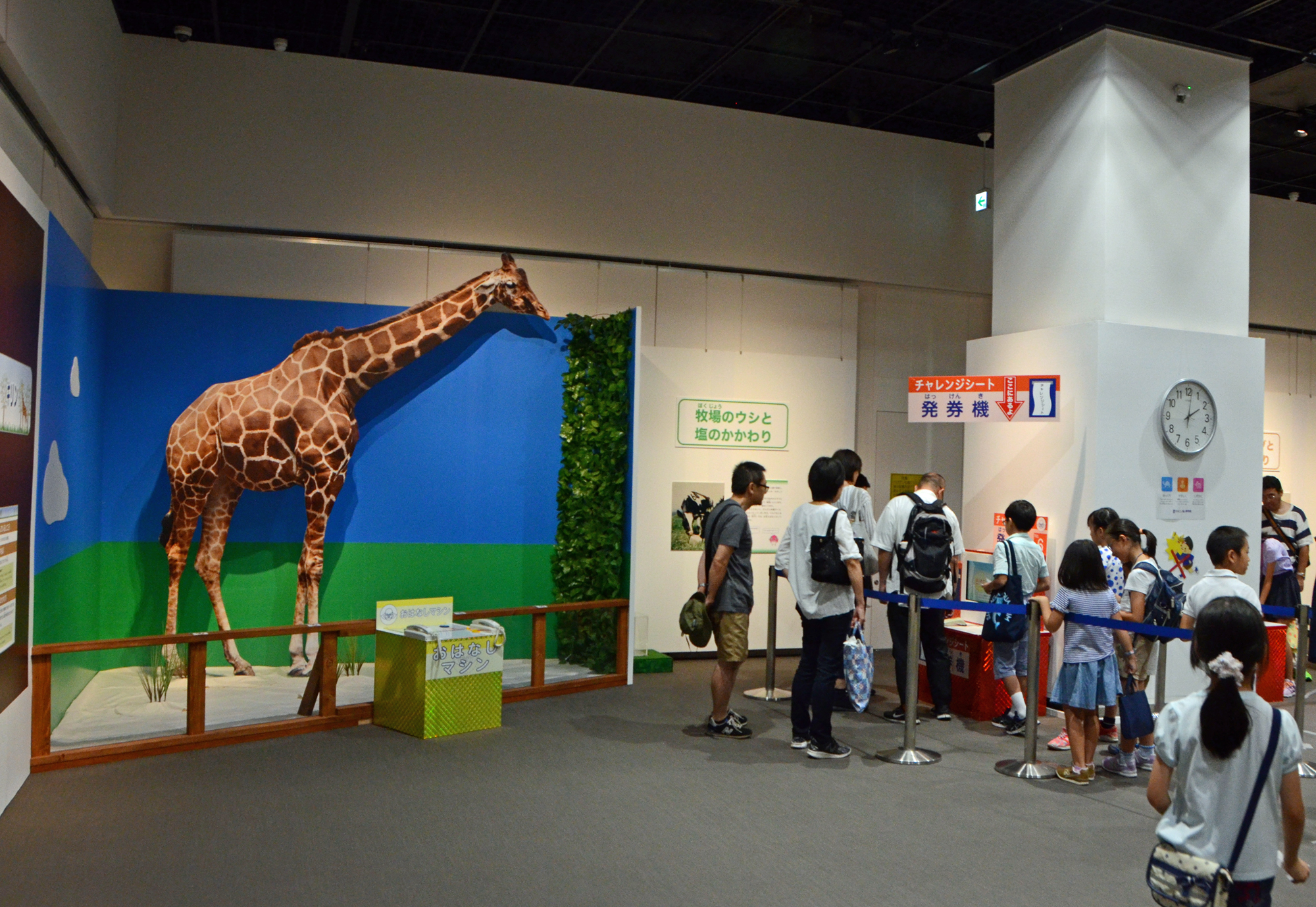 今回の会場では、どんな動物がどのタイプに当てはまるのか、実物大の動物パネルやはく製、実際に見てお楽しみの特別な装置とともに解説していくよ。雰囲気はさながら動物園! 動物の特徴や塩との関わりを、楽しみながら学んじゃおう!
