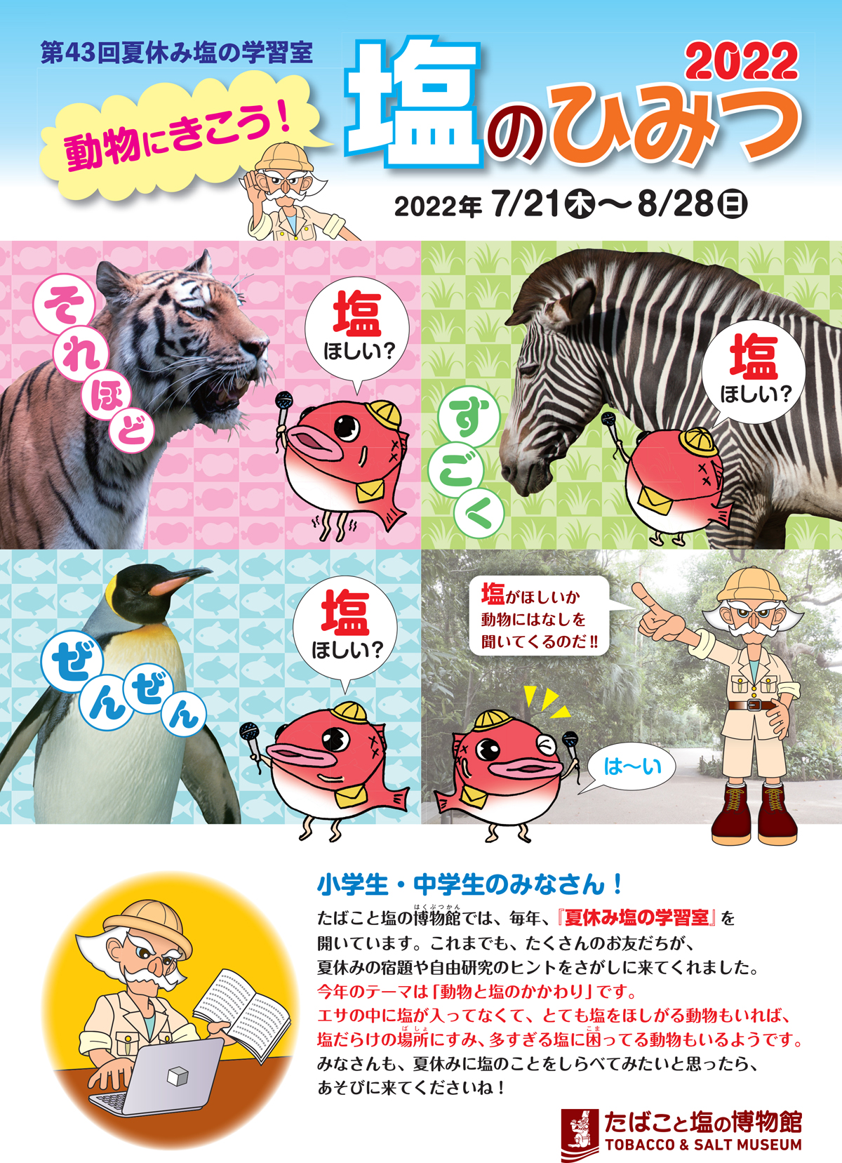| イベント名 | 第43回夏休み塩の学習室「動物にきこう!塩のひみつ2022」 |