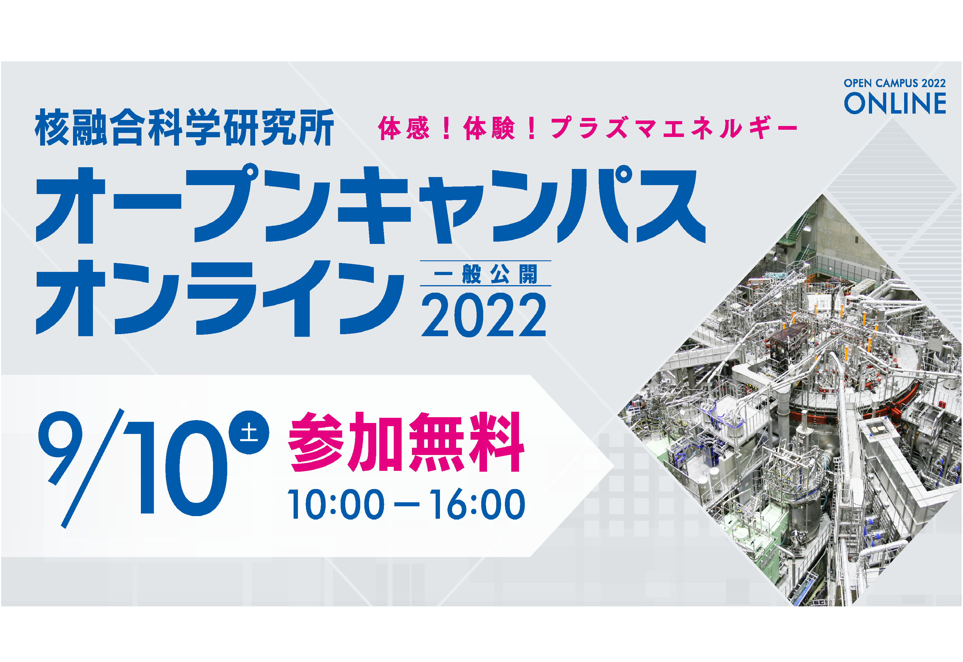 2022年9月10日(土)、核融合科学研究所のオープンキャンパスがオンライン開催されます。