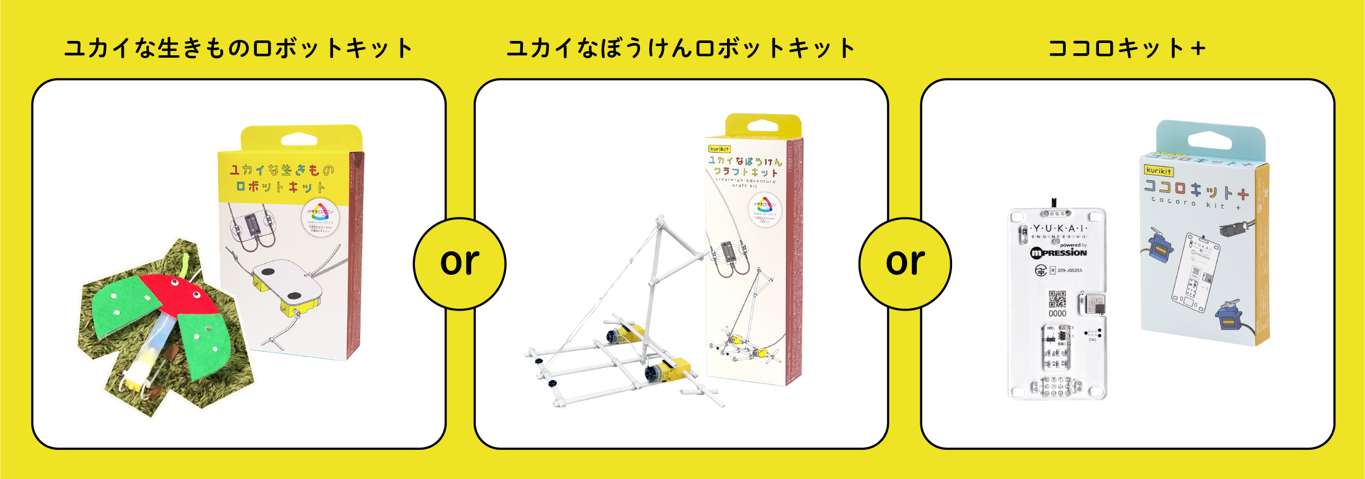 ロボットはユカイ工学の下記のキットいずれか1つを使ってつくるよ。