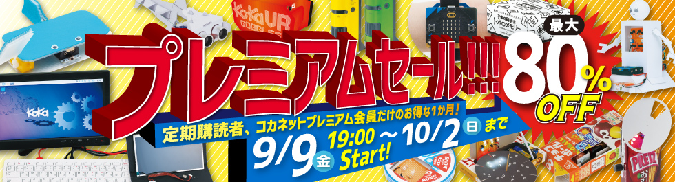 子供の科学の物販サイト「KoKa Shop!」では、9月9日(金)から10月2日(日)までの期間、Fujisan.co.jp子供の科学定期購読者とコカネットプレミアム会員限定の「プレミアムセール」を開催します。