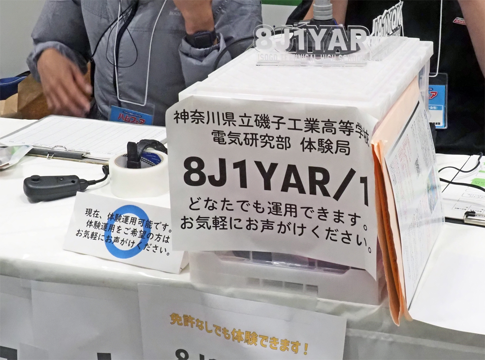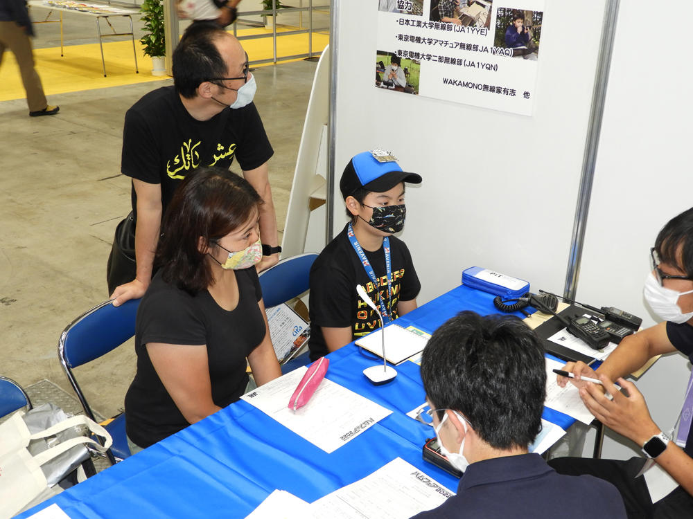 会場内の「クラブコーナー」には、全国から134のアマチュア無線クラブがブースを出展して、クラブのPRや研究発表などを行った。中には無資格者でもアマチュア無線の交信が体験できる「臨時体験局」を設けて、これからハムの仲間入りをしようと考えている人たちに実際の交信方法を教えてくれるブースもあったよ。