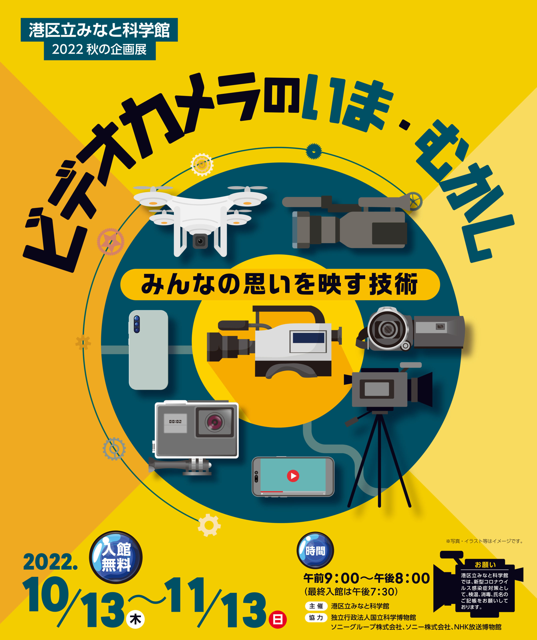 みんな、動画はよく撮影する? スマートフォンのおかげで、動画の撮影は身近なものになっているよね。でも、こんなに小型化する前は、大きなビデオカメラを持ち歩く必要があったんだ。この展示では、アナログからデジタルへ、小型・軽量・高精細化し、スマホやドローンへと進化を遂げたビデオカメラ技術の変遷を振り返るよ。貴重な実機の展示や、映像のしくみが学べる工作コーナーもあるぞ。トークショーなども予定されているから、公式サイトで最新情報をチェックしてね。