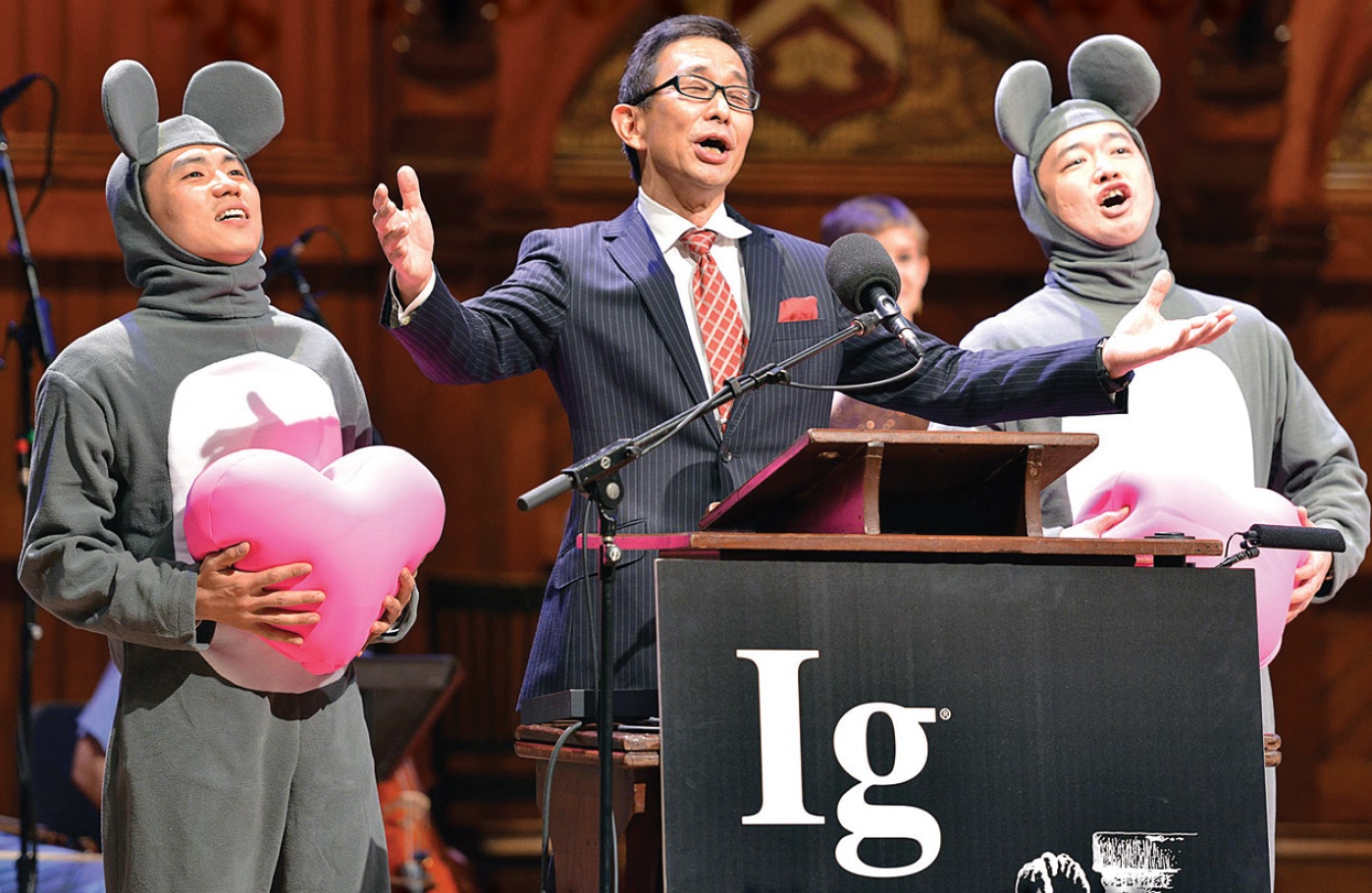 「イグ・ノーベル賞」とは、1991年に創設された「人々を笑わせ、そして考えさせる研究」に贈られる賞のこと。毎年9月にアメリカ・ハーバード大学で、ユニークで楽しい授賞式が行われているよ。