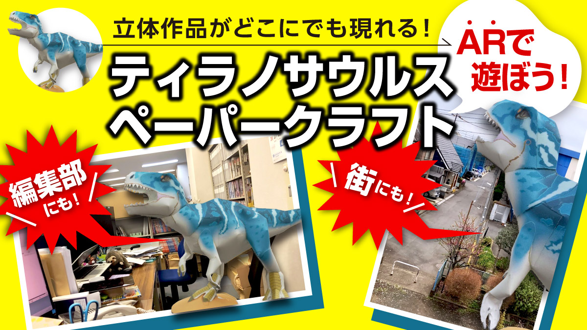 「子供の科学」2023年4月号のとじ込み付録「ティラノサウルス ペーパークラフト」はもうつくったかな? 今にも動き出しそうなカッコイイペーパークラフトなんだけれど、AR(拡張現実)によってティラノサウルスが目の前に出現させることもできるんだ! 目の前に表示できたら、写真を撮ることも可能。いろいろなところにティラノサウルスを出現させて、「KoKaひろば」からぜひ写真を投稿しよう★