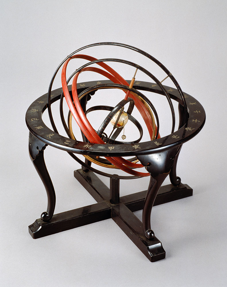 陰陽師の大切な仕事のひとつは、なんといっても暦の製作と配布。古代・中世社会においては朝廷を中心に暦がつくられ、近世では幕府も関与するようになるなかで、陰陽師はその仕事を担い、精度を維持することに注力した。会場には、暦をつくるために天体の位置を観測する器械「渾天儀
