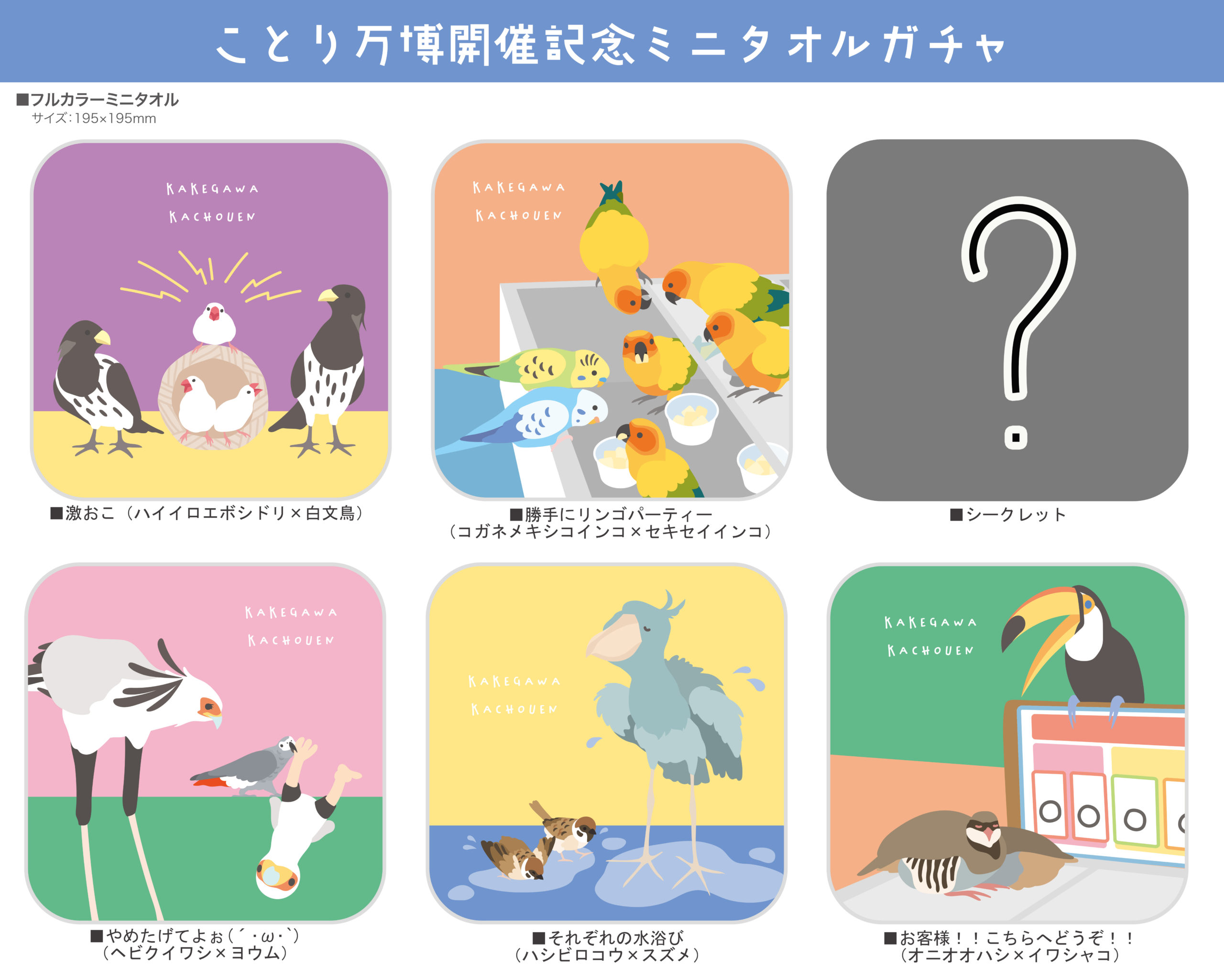 会場では、開催記念のミニタオルガチャも行われる予定。どの絵柄も素敵だね。シークレットが気になる~!